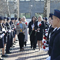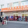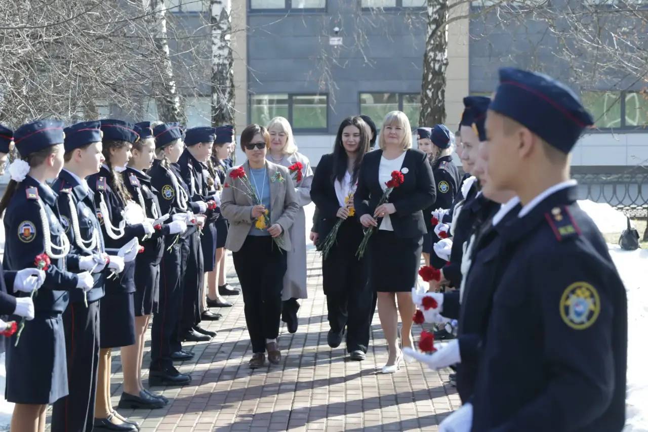 Торжественная часть началась в академическом корпусе гимназии, где делегацию встречали по исконно русской традиции. Фольклорный ансамбль «Лоскуток» в народных костюмах приветствовал гостей хлебом-солью и старинными песнями.