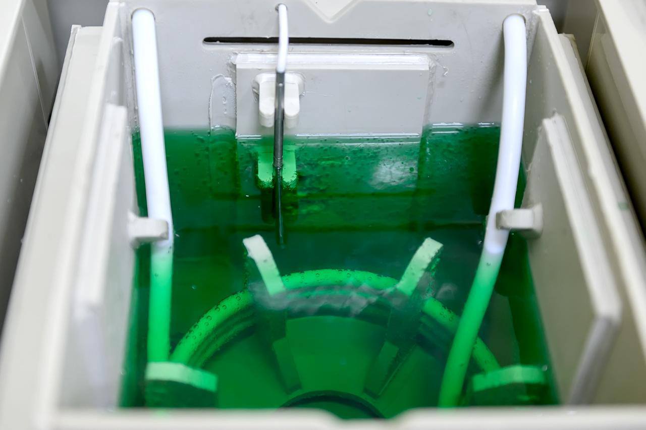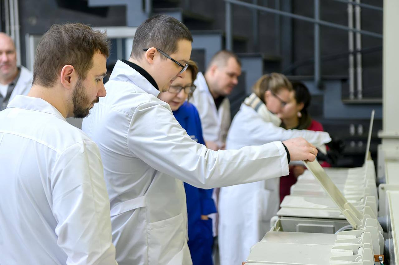 На производстве участники осваивают работу с ячейкой Хулла – специальным прибором для тестирования электролитов, проводят анализ состава гальванических растворов и самостоятельно наносят четыре вида покрытий – никель, медь, олово, цинк на тестовые образцы.