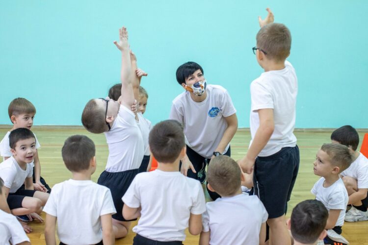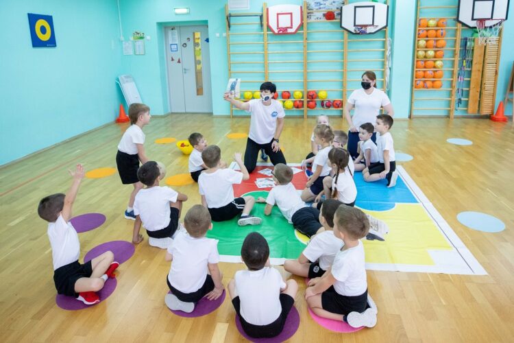 Занятия физкультурой проходят впечатляюще. Дети, заходя в спортивный зал, здороваются с педагогом с помощью «Доски приветствий». Выбирая картинку с видом приветствия, маленькие подольчане пожимают, обнимают или хлопают руку учителя. В игровой форме дети также узнают о новых спортивных играх.