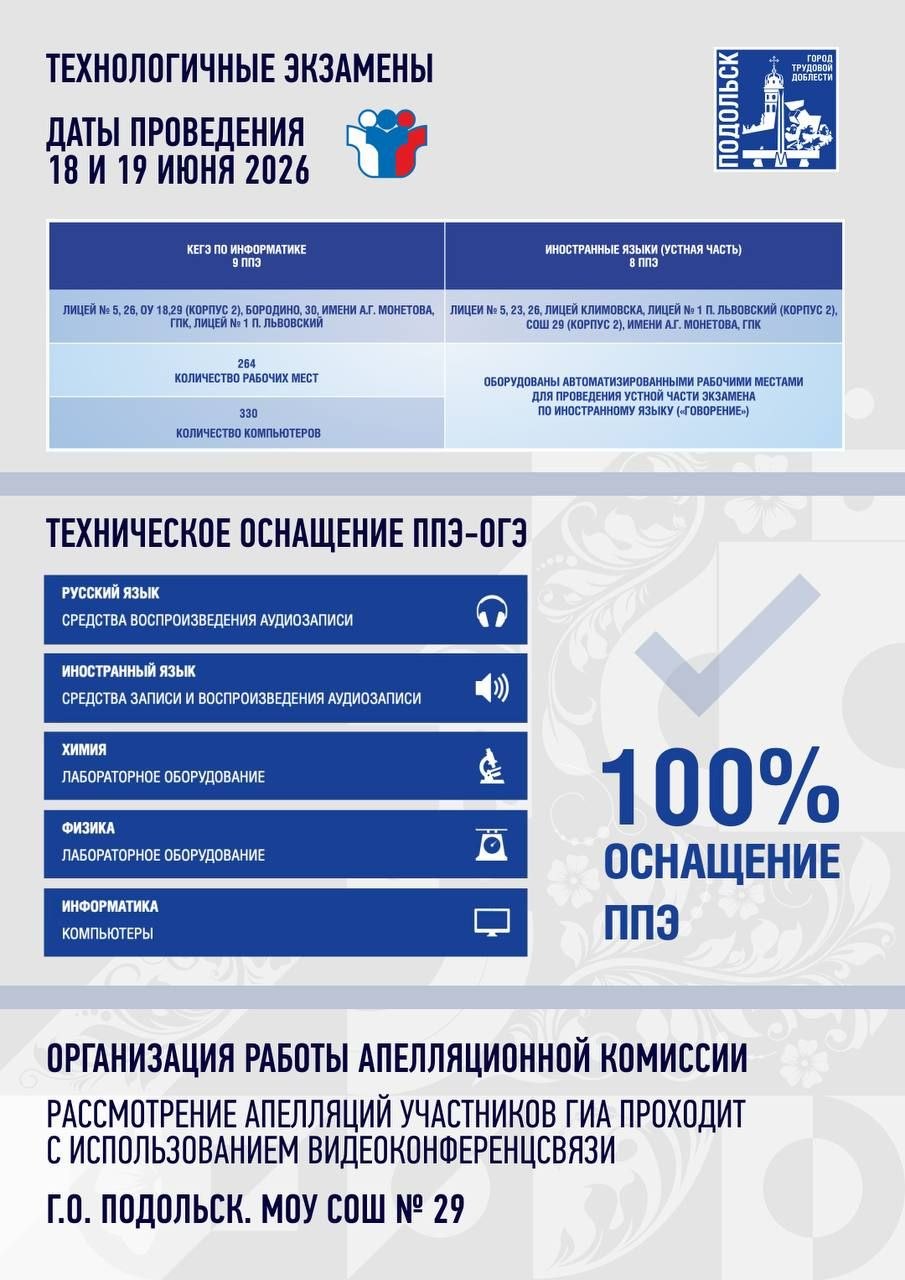 Сделано всё, чтобы экзамены прошли максимально удобно: в округе будут работать 28 пунктов ОГЭ и 13 пунктов ЕГЭ, расположенных в шаговой доступности в каждом микрорайоне. Для выпускников школ имени Дмитрия Зернова и Героя РФ, летчика-испытателя Николая Куимова, будет организован транспорт.