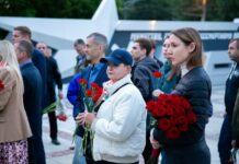 Жители округа возложили цветы к памятнику Подольским курсантам