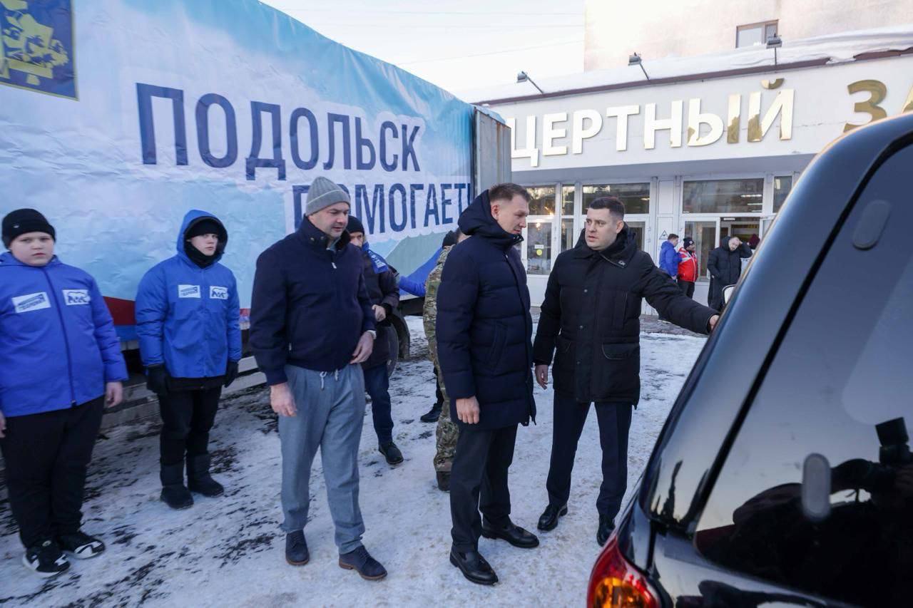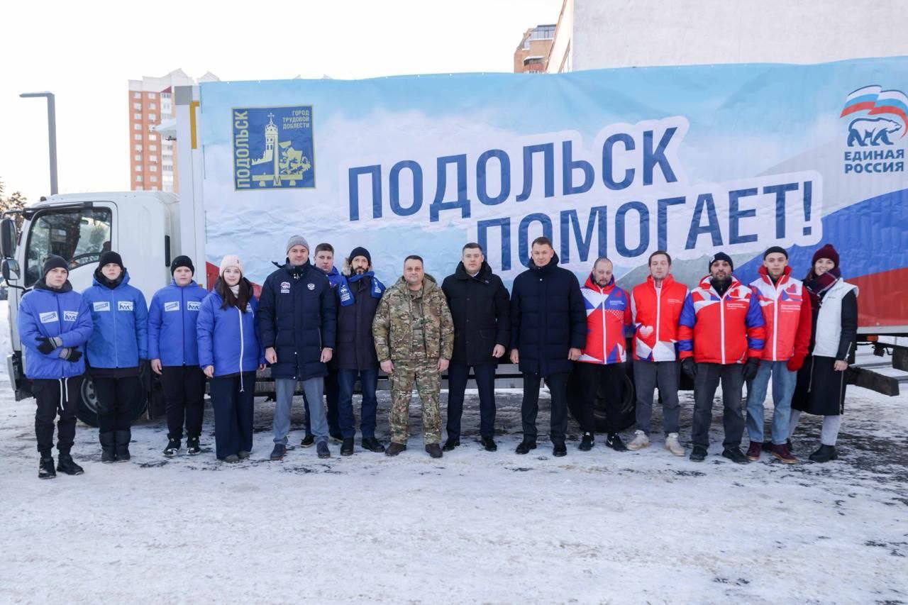 Груз в зону проведения СВО доставил глава городского округа Подольск Григорий Артамонов вместе с сенатором РФ Александром Двойных, депутатами и председателем горсовета Игорем Науменковым, игуменом Вознесенской Давидовой Пустыни, благочинным монастырей Подольской епархии Московской митрополии Сергием и волонтерами.