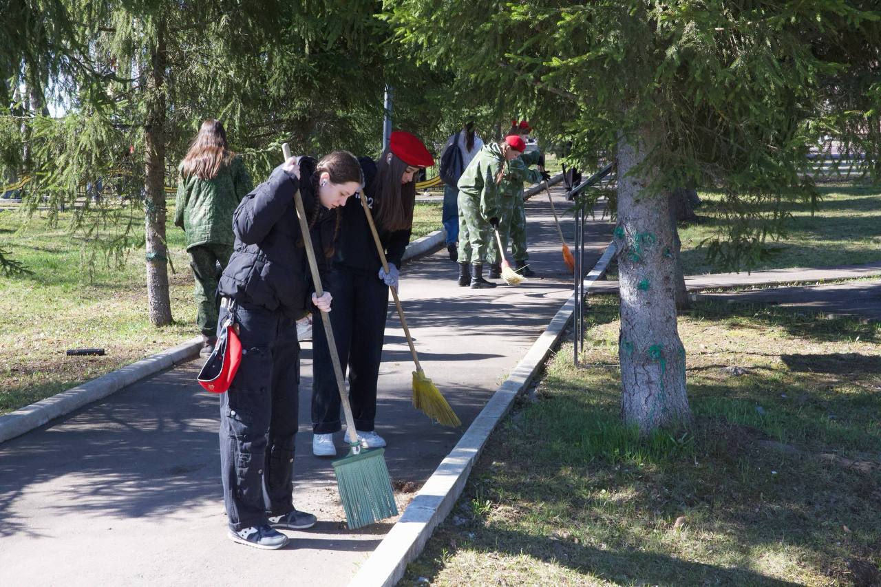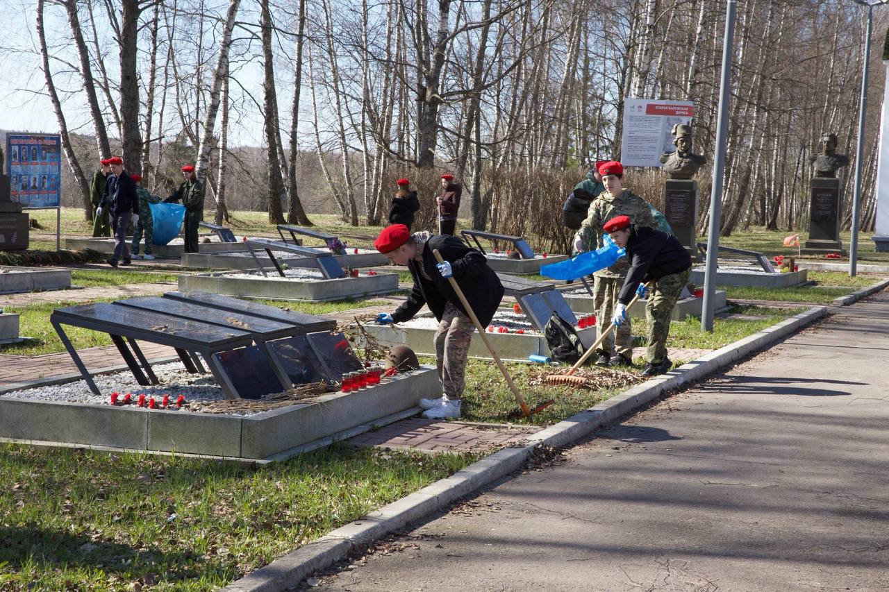 Подольские юнармейцы навели порядок на территории воинского мемориала