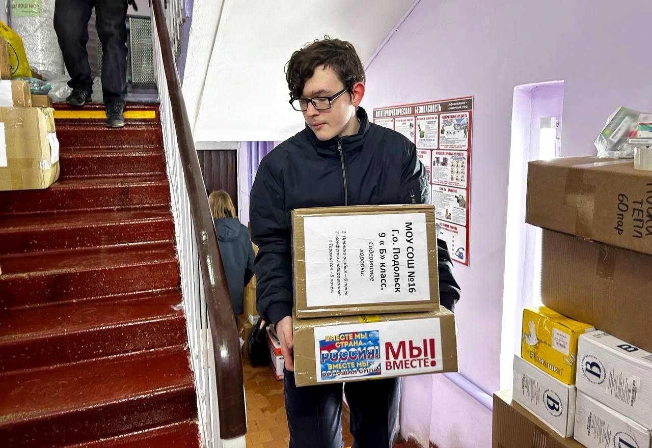 «Наша школа уже участвовала в акции «Подольск помогает». На этот раз мы собрали порядка 40 коробок. Девочки их упаковывают и подписывают, а мальчишки носят. А еще ребята передали на фронт около 700 новогодних открыток с добрыми пожеланиями и тёплыми словами», — рассказала заместитель директора по воспитательной работе школы № 16 Наталья Жаковщикова.