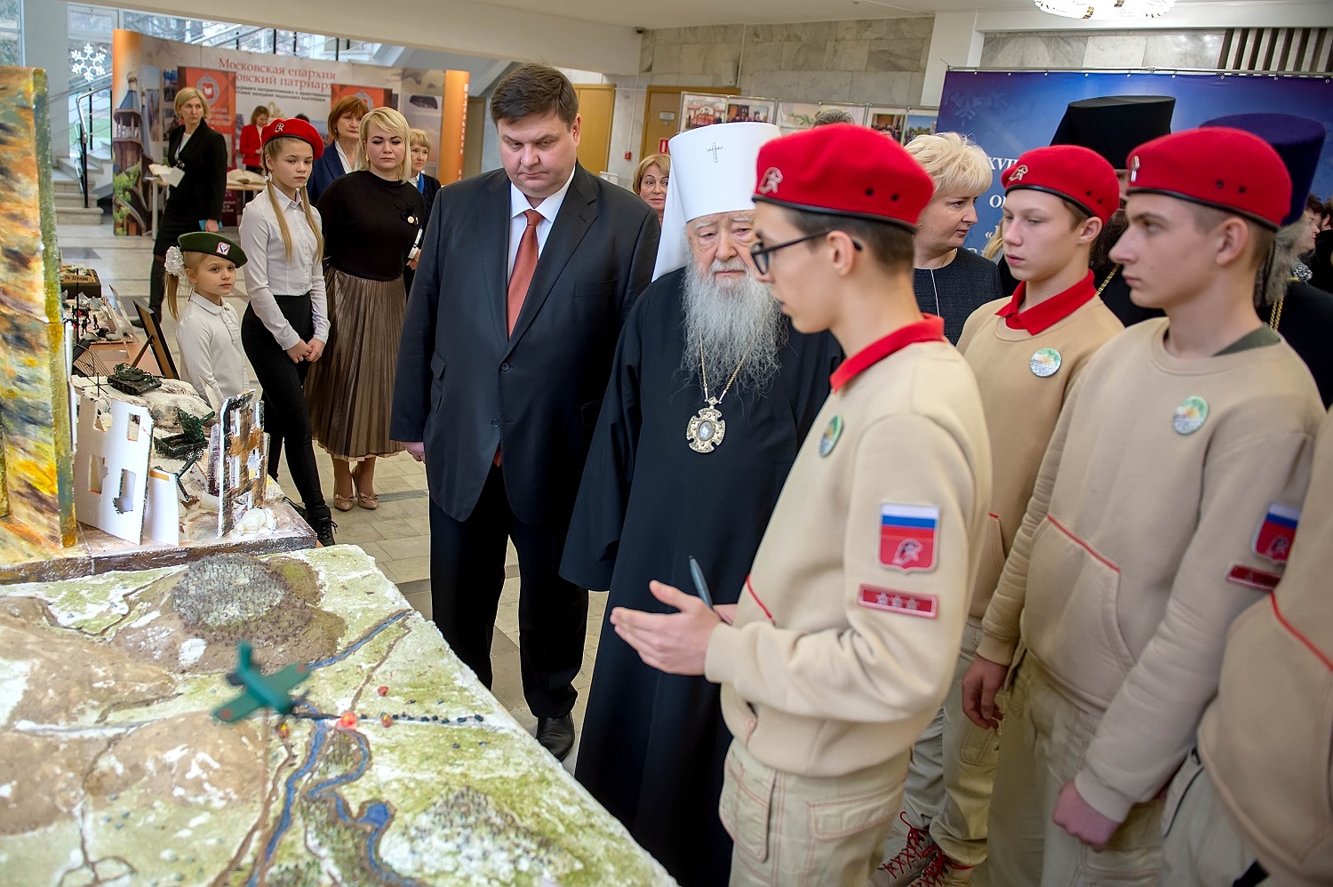 — В Подольске уже не в первый раз проходит это важное просветительское мероприятие, — сказал Николай Пестов. – Для нас большая честь и ответственность принимать участников XVII Московских областных Рождественских образовательных чтений, посвященных знаменательной дате – 75-летию Победы советского народа в Великой Отечественной войне. Главный вопрос, который требует нашего совместного системного, постоянного подхода — воспитание детей и молодежи на высоких примерах духовности, самопожертвования, которые явили миру наши предки – участники Великой Отечественной войны, труженики тыла, воспитание на исторических и патриотических традициях. Обеспечение духовно-нравственного развития и воспитания личности гражданина России – ключевая задача современной государственной политики, это направление является одним из приоритетных и в системе образования Городского округа Подольск. Строится оно в том числе на основе долгосрочного сотрудничества наших образовательных организаций с Подольским благочинием. В рамках сотрудничества во всех общеобразовательных организациях реализуются учебные предметы, курсы, модули, раскрывающие основы духовно-нравственной культуры народов Российской Федерации, основы православия. За последние три года охват обучающихся по модулю «Основы православной культуры» в школах Городского округа Подольск вырос до 75%. Совместно с представителями Подольского благочиния педагоги школ приняли участие в 6 международных и 120 региональных семинарах. Проведено более 250 «круглых столов», мастер-классов на муниципальном уровне. Более 30 педагогов образовательных организаций состоят в Ассоциации педагогов Московской области «Преподаватели духовно-нравственной православной культуры» и являются активными участниками областных мероприятий по духовно-нравственному воспитанию, организуемыми Ассоциацией совместно с Министерством образования Московской области. Результатом этой важной и разноплановой работы является большое количество победителей и призеров в тематических конкурсах и олимпиадах. В 2019 году Городской округ Подольск завоевал 3 призовых места в общероссийской олимпиаде по основам православной культуры. Плодотворно работает клуб «Духовное наследие», который объединяет 50 педагогических работников из 32 учреждений дошкольного образования. Только за последние 3 года более 1300 учащихся и воспитанников дошкольных образовательных учреждений приняли участие в мероприятиях разных уровней. Большую роль в воспитательном процессе играет деятельность православных молодежных организаций, местного отделения Всероссийского военно-патриотического общественного движения «Юнармия». Сегодня в рядах ее состоят более 1100 школьников округа из 31 общеобразовательной организации.