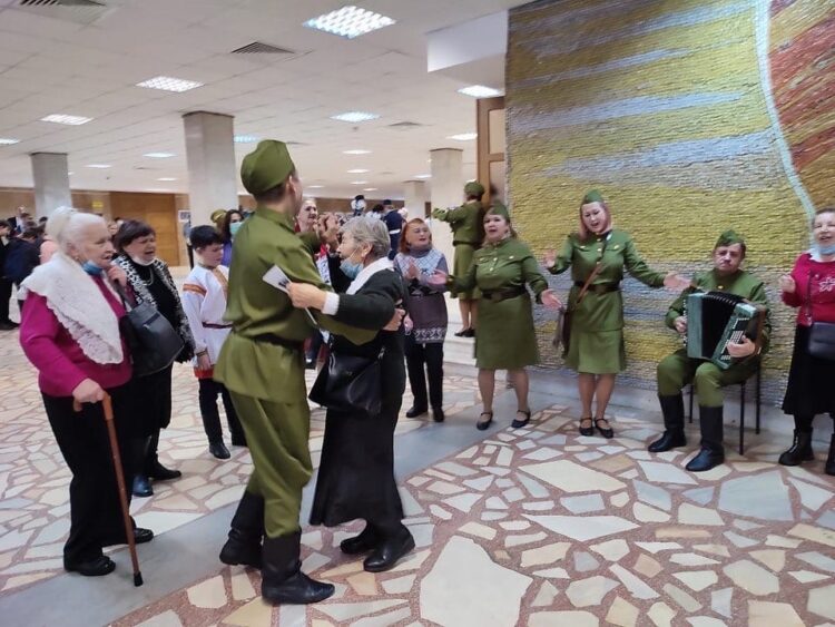 Творческая группа Дома Культуры «Плещеево» и воспитанники театральной студии «Огниво» встречали гостей форума-концерта в фойе душевными военными песнями и частушками.