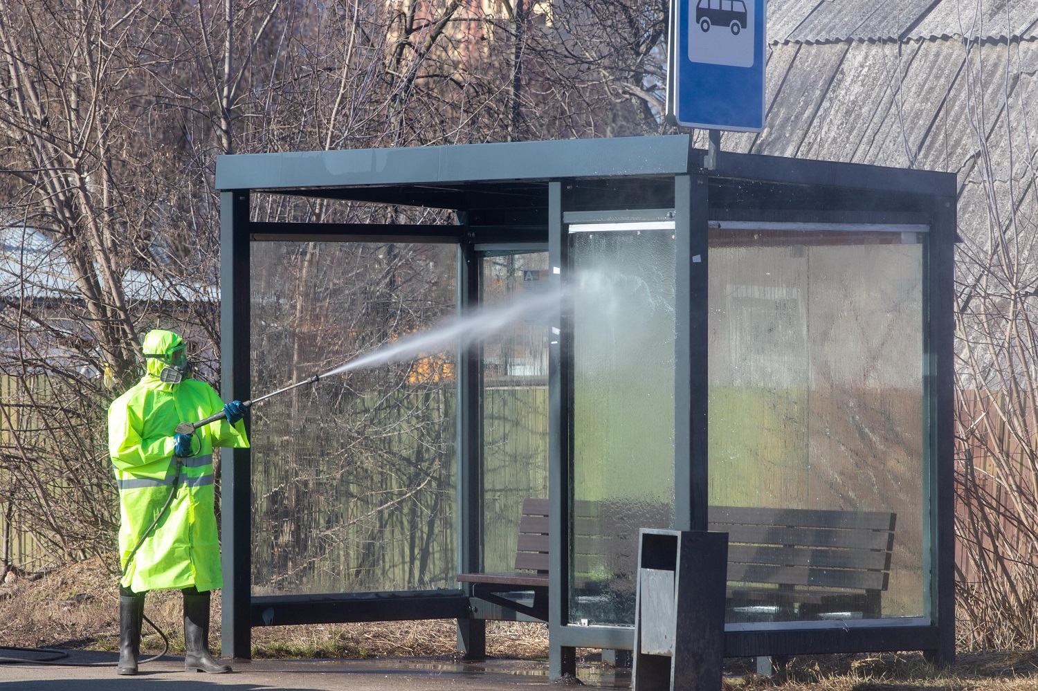 В Большом Подольске насчитывается 97 остановочных павильонов на дорогах муниципального значения, которые ежедневно обрабатывают 5-процентным раствором активного хлора.
