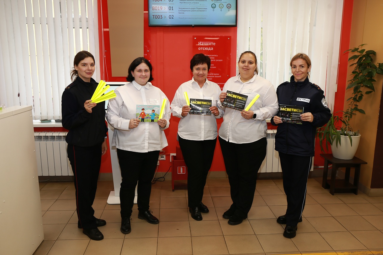 В Подольске сотрудники Госавтоинспекции провели профилактическую акцию в МФЦ, направленную на популяризацию световозвращающих аксессуаров и профилактику дорожно-транспортного травматизма.