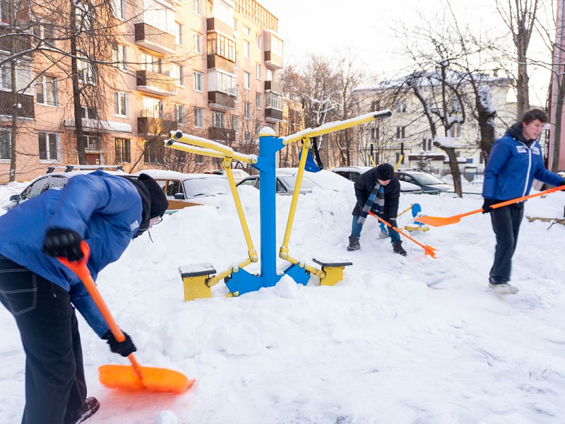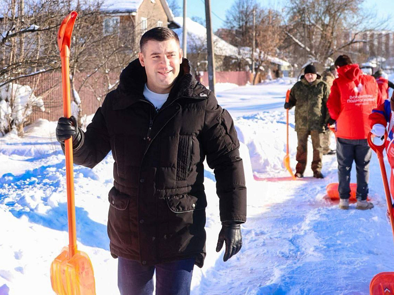 В Подольске волонтеры помогли убрать снег у дома ветерана-инвалида