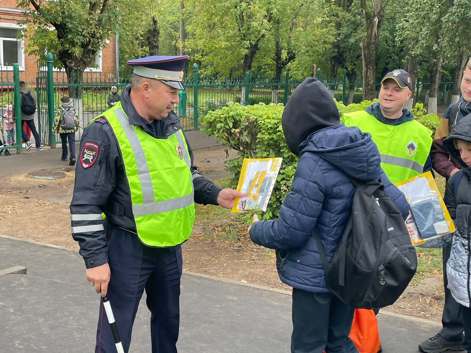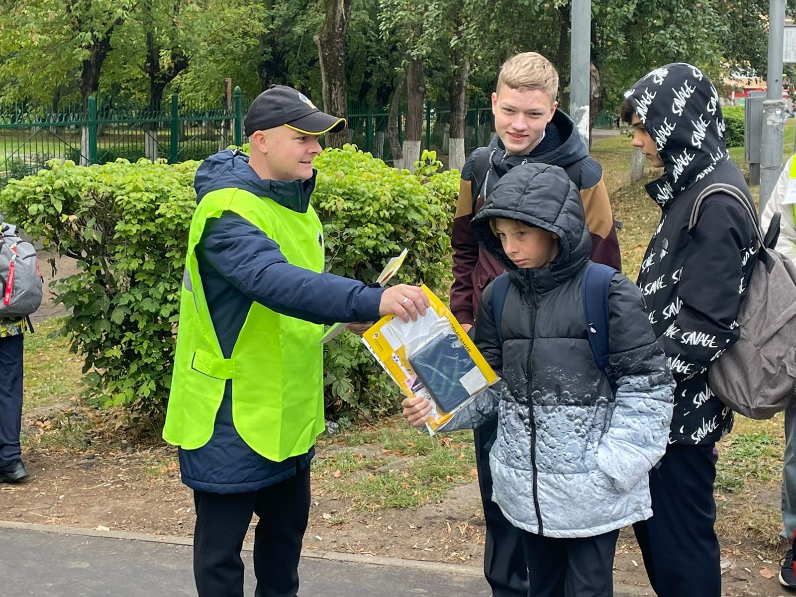 Каждому школьнику организаторы вручили световозвращающие аксессуары и школьные принадлежности с тематической инфографикой.
