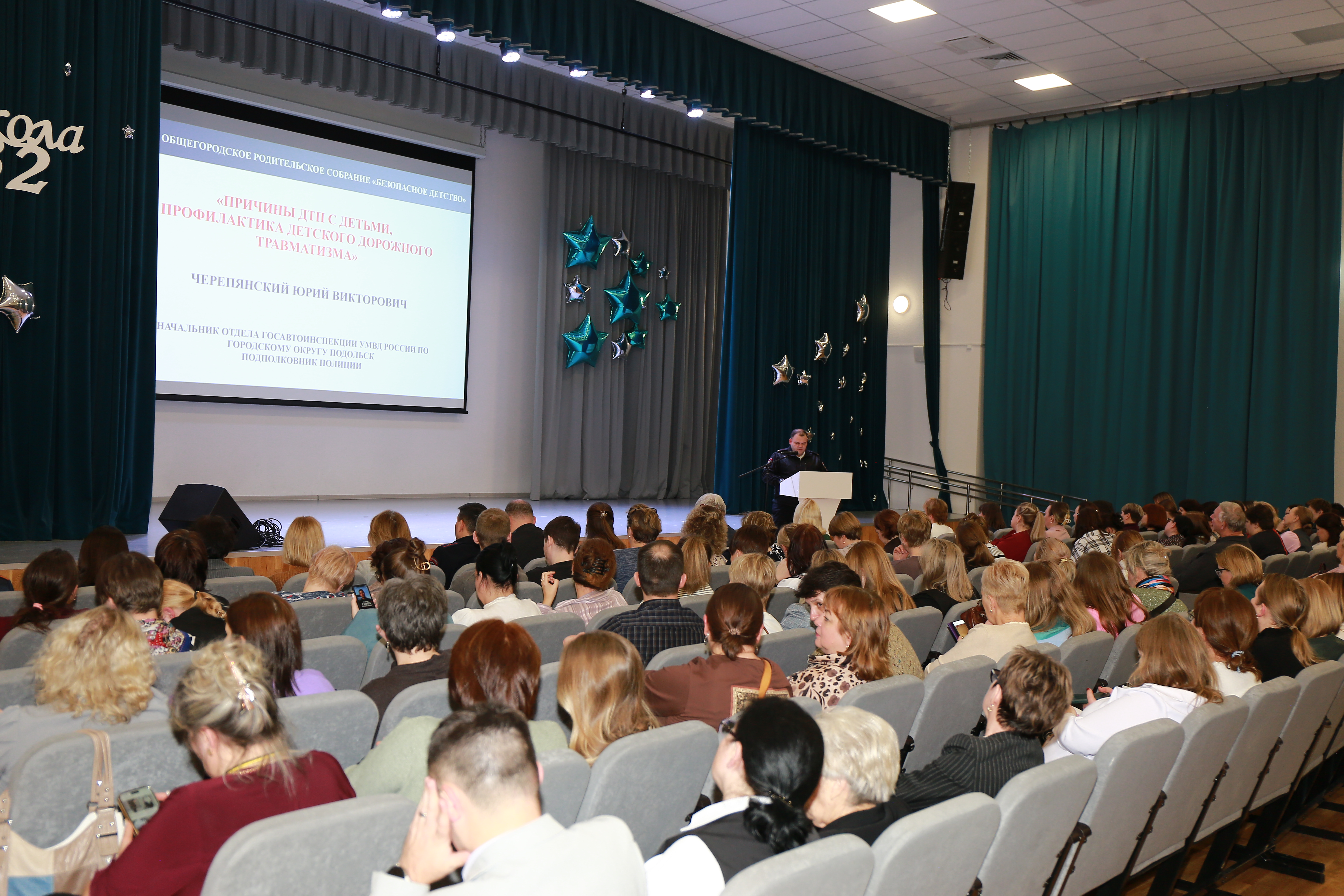 В г.о. Подольск на базе одной из школ состоялось общегородское родительское собрание на тему: «Безопасное детство». В качестве спикеров внем приняли участие сотрудники Госавтоинспекции г.о. Подольск, ОУУПиДН УМВД России по г.о. Подольск, ОДН ЛУ МВД России на станции Москва-Курская, комиссия по делам несовершеннолетних и защите их прав Городского округа Подольск, комитета по образованию Администрации, представитель аппарата антитеррористической комиссии округа, а также медицинский психолог отделения ГБУЗ МО «МОКНД» филиал №2.