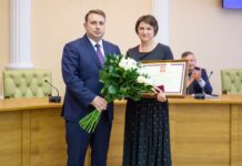 Дмитрий Жариков вручил Почетную грамоту Президента Российской Федерации Наталье Ельцовой