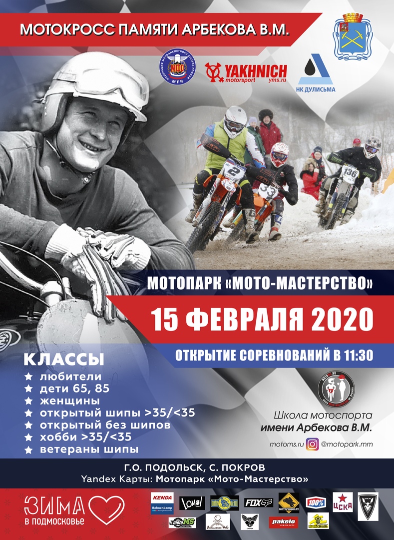 В субботу, 15 февраля, в районе села Покров Городского округа Подольск состоится мотокросс памяти первого советского чемпиона мира по мотокроссу, заслуженного мастера спорта В.М. Арбекова. Открытие соревнований в 11.30.
