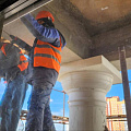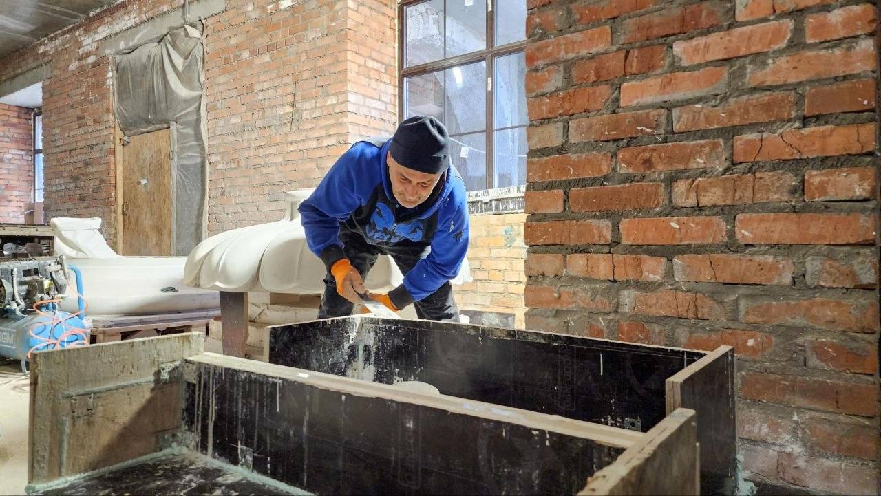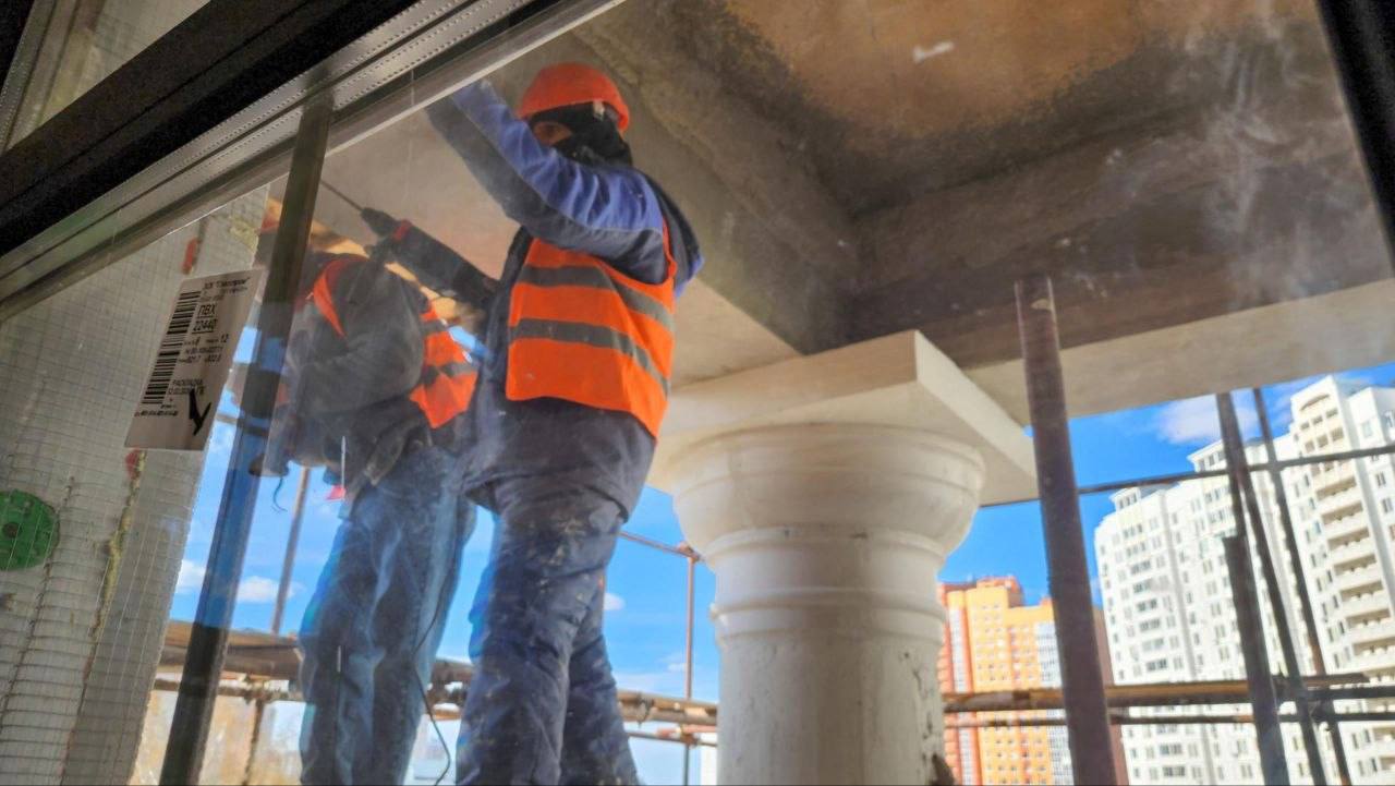 Параллельно мастера штукатурят малые звонницы и монтируют архитектурные элементы на колоннах и пилястрах. Кресты для звонниц уже доставили в храм, они готовы к установке.