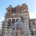 Затем на купол установят крест, и всю конструкцию поднимут наверх, так общая высота храма превысит 50 метров.