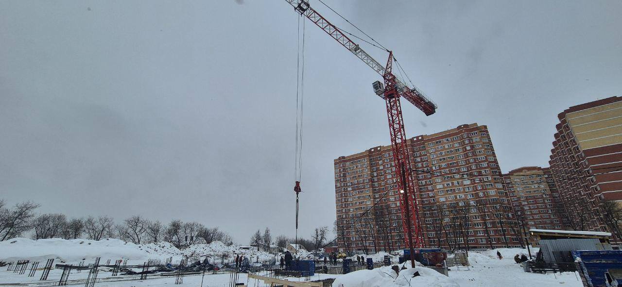 На стройплощадке школы на улице Ватутина в Шепчинках установили первый башенный кран