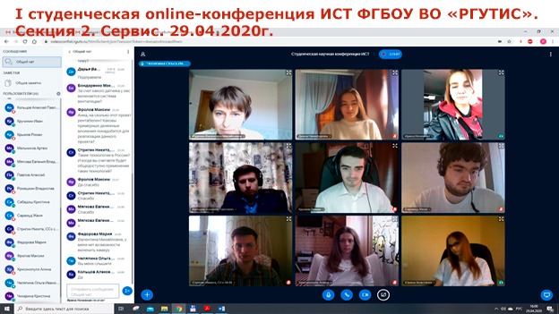 В среду, 29 апреля, в Институте сервисных технологий Российского государственного университета туризма и сервиса состоялась первая online студенческая научно-практическая конференция, об этом сообщили в Комитете по делам молодежи администрации Городского округа Подольск. Тематика конференции охватила актуальные вопросы инновационного развития сервиса и туризма.