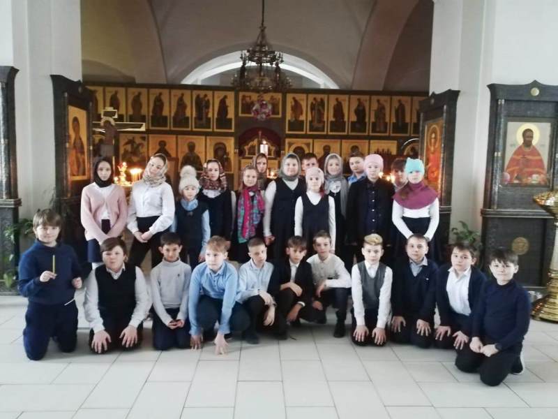 МЕДИАЦЕНТР — 1 февраля, ПОДОЛЬСК — 28 января 30 учащихся 4-Б класса классического корпуса Гимназии имени Подольских курсантов вместе с классным руководителем Бращиной Еленой Игоревной побывали на экскурсии в Храме священномученика Сергия, расположенном поблизости от школы. Поход в храм стал итогом большой подготовительной работы. Накануне в этом классе в рамках изучения предмета “Основы религиозной культуры и светской этики» были проведены занятия, на которых дети познакомились с устройством православного храма, с заповедями Божьими, узнали много ранее неизвестного о названии храма, о священномученике Сергии, о Бутовском полигоне, о страшном периоде репрессий в нашей стране, о Соловецких островах и о Поклонных крестах как символе покаяния. Во время встреч со священниками в школе ребята расширили свои знания. И вот, наконец, долгожданная экскурсия, когда можно воочию увидеть своими глазами, как устроен храм, познакомиться с алтарем, с алтарной преградой — иконостасом, с аналоем, кануном, увидеть своими глазами храмовые иконы, узнать о мощевиках, правильно подать записки, поставить свечи к иконам. После небольшой экскурсии по храму детям было дано задание: найти икону Подольских святых. С заданием справились без труда! Было отрадно, что ребята сразу узнали и другие иконы, с которыми познакомились ранее: икона священномученика Сергия, Сергия Радонежского – покровителя учения. В конце экскурсии – свободное время на записки и свечи.