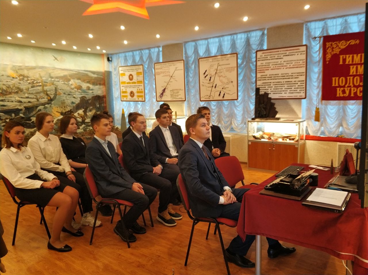 Как сообщили в Комитете по образованию администрации Городского округа Подольск, одна из дискуссионных площадок на тему «Герои и подвиги в памяти народной» работала в школьном музее Гимназии имени Подольских курсантов в микрорайоне Климовск. Руководитель школьного музея педагог гимназии Павел Красновид рассказал о значении подвига Подольских курсантов в Битве за Москву. Его выступление сопровождалось презентацией, где были представлены архивные документы, карты, письма курсантов.