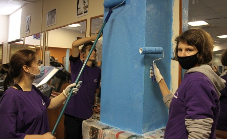 – Ребята делают все добросовестно. На улице они красят стены в белый цвет для фестиваля хип-хоп культуры, который пройдет осенью — художникам нужны будут площади, чтобы рисовать в рамках номинации «Граффити». Также внутри, в тренажерном и спортивном залах, члены трудовой бригады красят стены и протирают зеркала, — сказал Дмитрий Клятвин.