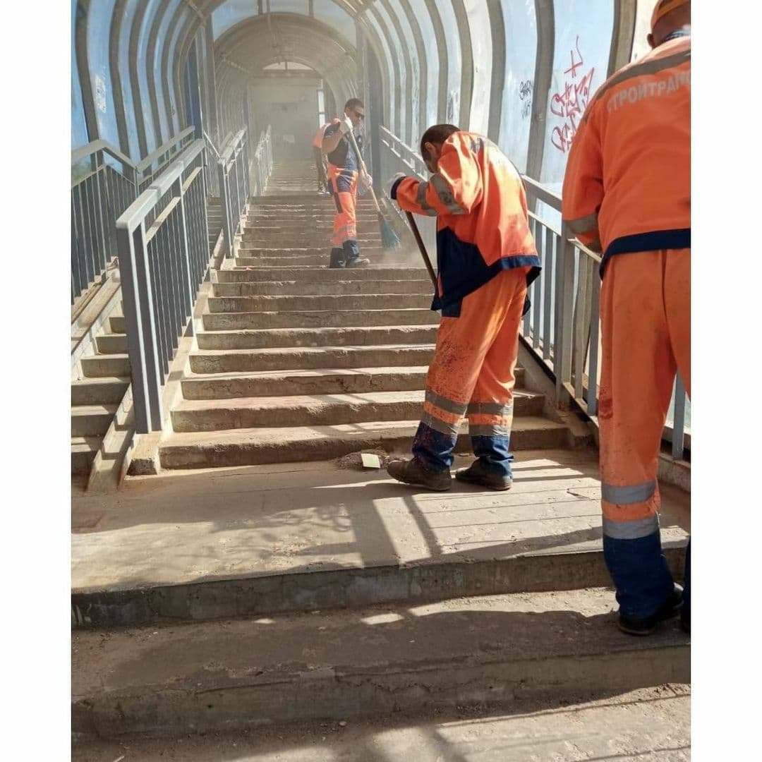 Работы по уборке перехода от мусора, грязи, пыли и устранению надписей проведены.