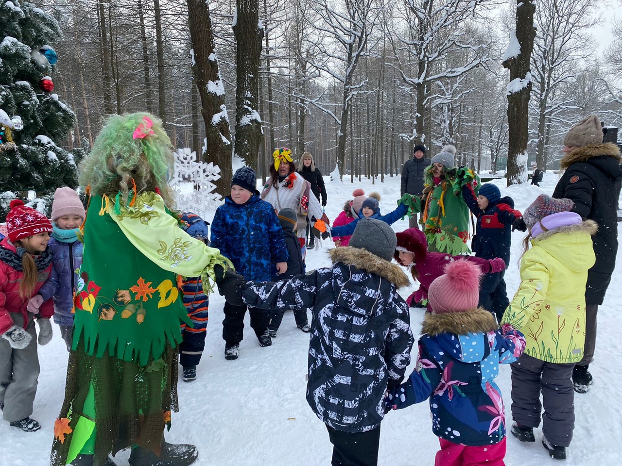 В субботу,5 февраля артисты ДК «Металлург» провели большое путешествие по сказке «КОЛОБОК» , а на следующий день, 6 февраля парк посетили сказочные герои Леший, Баба Яга и Кикимора.