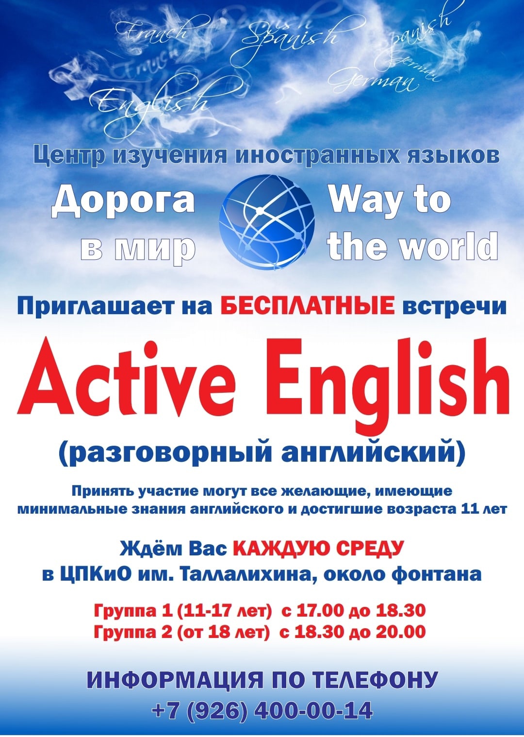 МЕДИАЦЕНТР — 10 июня, ПОДОЛЬСК — Приглашаем всех желающих с минимальным уровнем знания английского языка попрактиковать разговорный английский, возраст участников от 11лет.