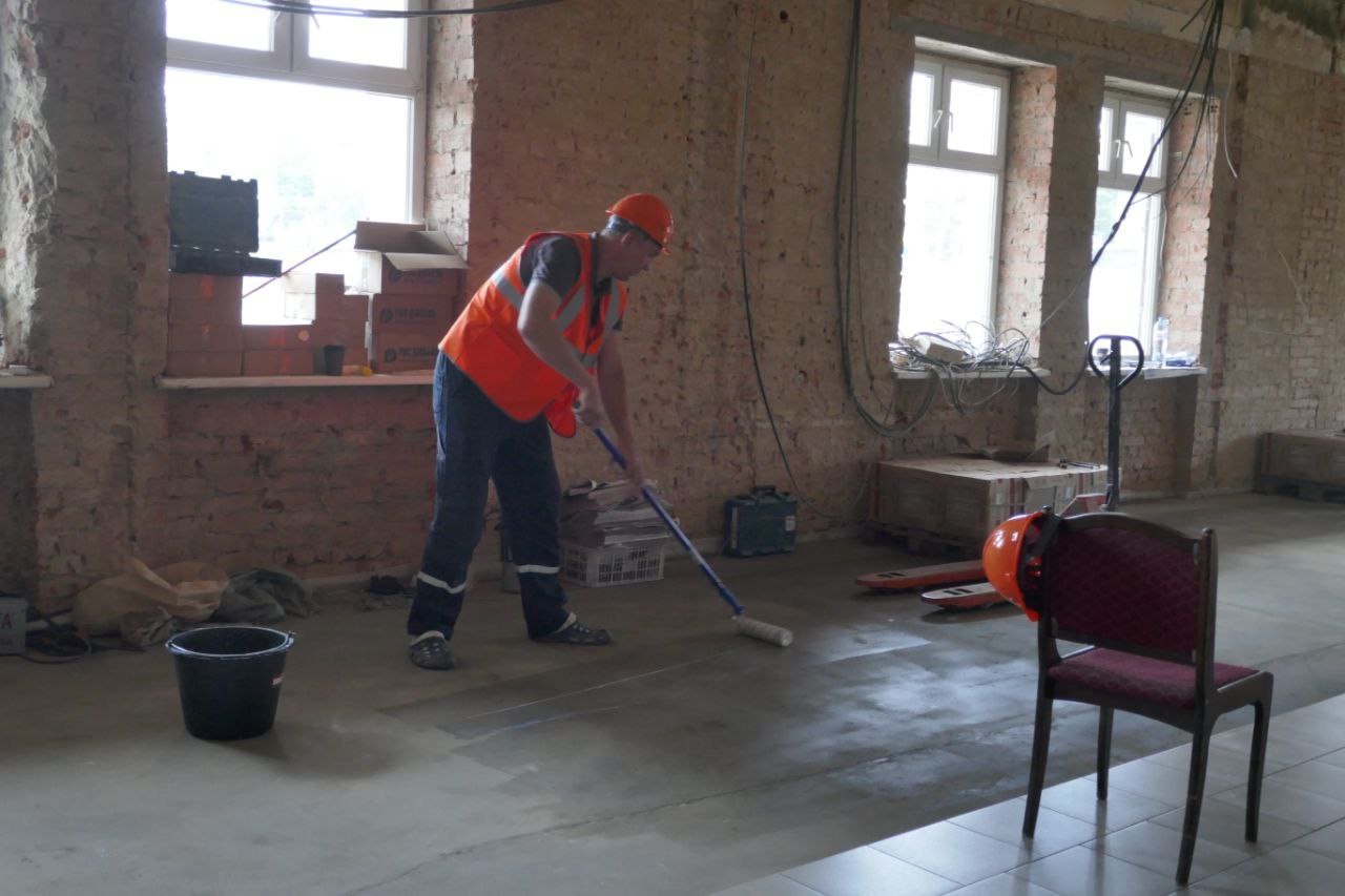 Специалисты уже приступили к капитальному ремонту. Рабочие завершили демонтаж ненужных перегородок, сняли старую штукатурку с фасада, сделали полусухую стяжку пола с виброволокном. Также они приступили к укладке напольной плитки и возведению новых перегородок.