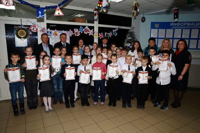 На конкурс было представлено 80 тематических творческих работ в номинациях «Новогодние часы в стране ПДД», «Новогодняя гирлянда «Дорожные знаки»», «Новогодний светофор». Церемония награждения прошла в холле отдела ГИБДД, который украсили тематическими игрушками-поделками победителей данного конкурса. 33 школьника и их родители, работы которых, по мнению компетентного жюри, стали лучшими, получили в подарок грамоту, световозвращающий браслет и тематический пряник с изображением дорожного знака.