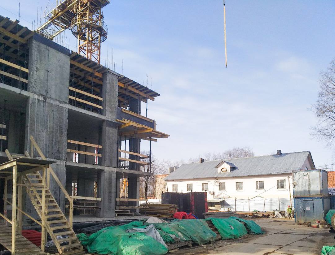 На площадке 45 рабочих и 5 единиц техники. В настоящее время ведутся работы по устройству монолитных конструкций надземной части здания на уровне 2-го- 3-го этажей. Со следующей недели подрядчик начинает кладку наружных и внутренних стен, уточняется в сообщении.