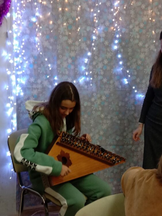На первой встрече удивительный мир этномузыки открыла Марина Сергеевна Щербакова- музыкант и педагог. Ребята услышали удивительную игру на гуслях звончатых – серебряный голос предков. И сами попробовали извлечь из инструмента волшебные звуки.
