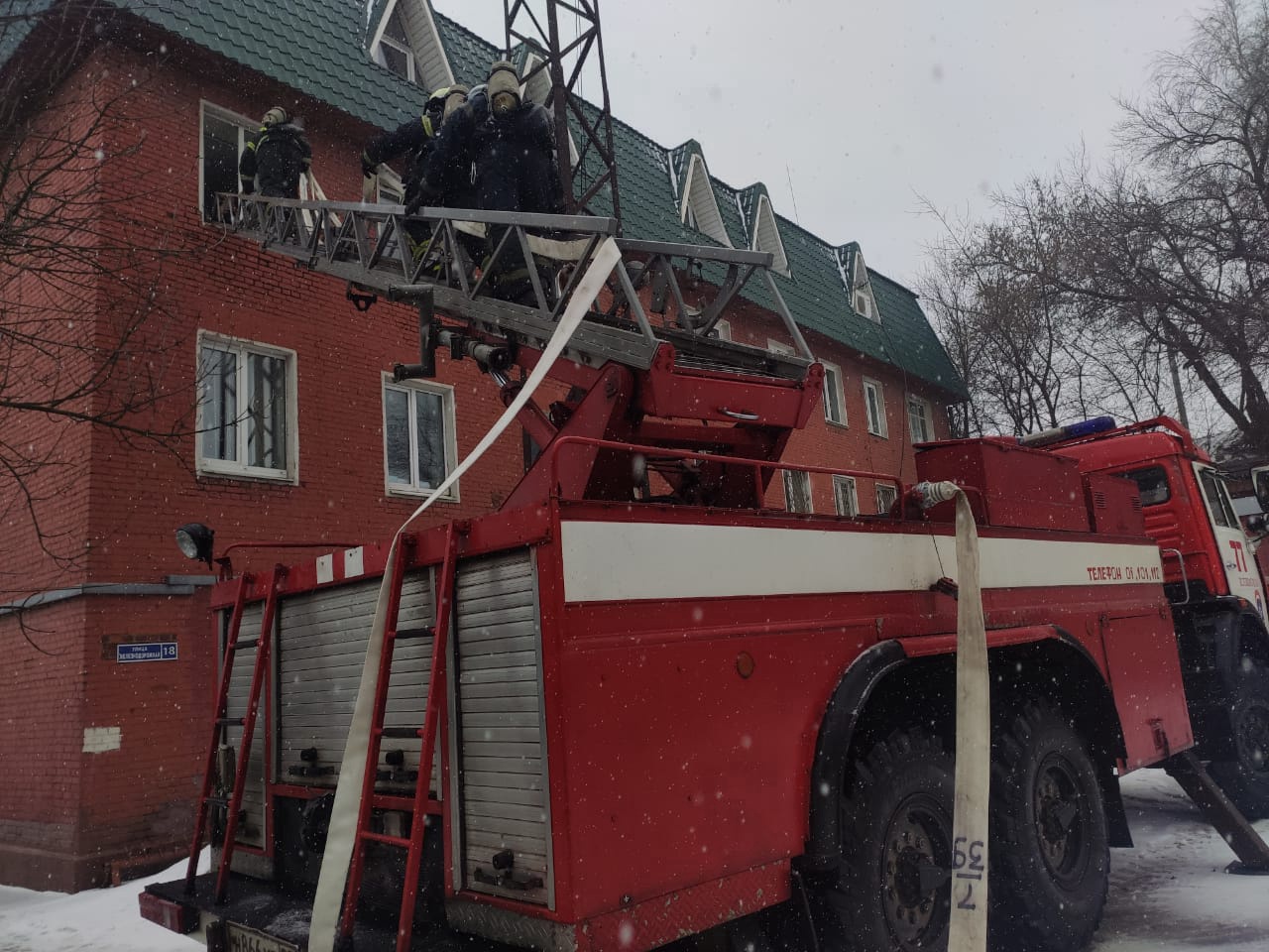 К месту вызова незамедлительно были направлены силы и средства Подольского пожарно-спасательного гарнизона, спасатели Подольского территориального управления ГКУ МО «Мособлпожпас» и личный состав Специального отдела №4 ФГКУ «СУ ФПС №3 МЧС России». Первый прибывший расчёт 309 пожарно-спасательной части, оценив обстановку, направил силы и средства на разведку звеном газодымозащитной службы на наличие и спасения людей в здании. Звено ГДЗС работало на тушение в бронежилете и защитной каске. Условный пожар был ликвидирован.