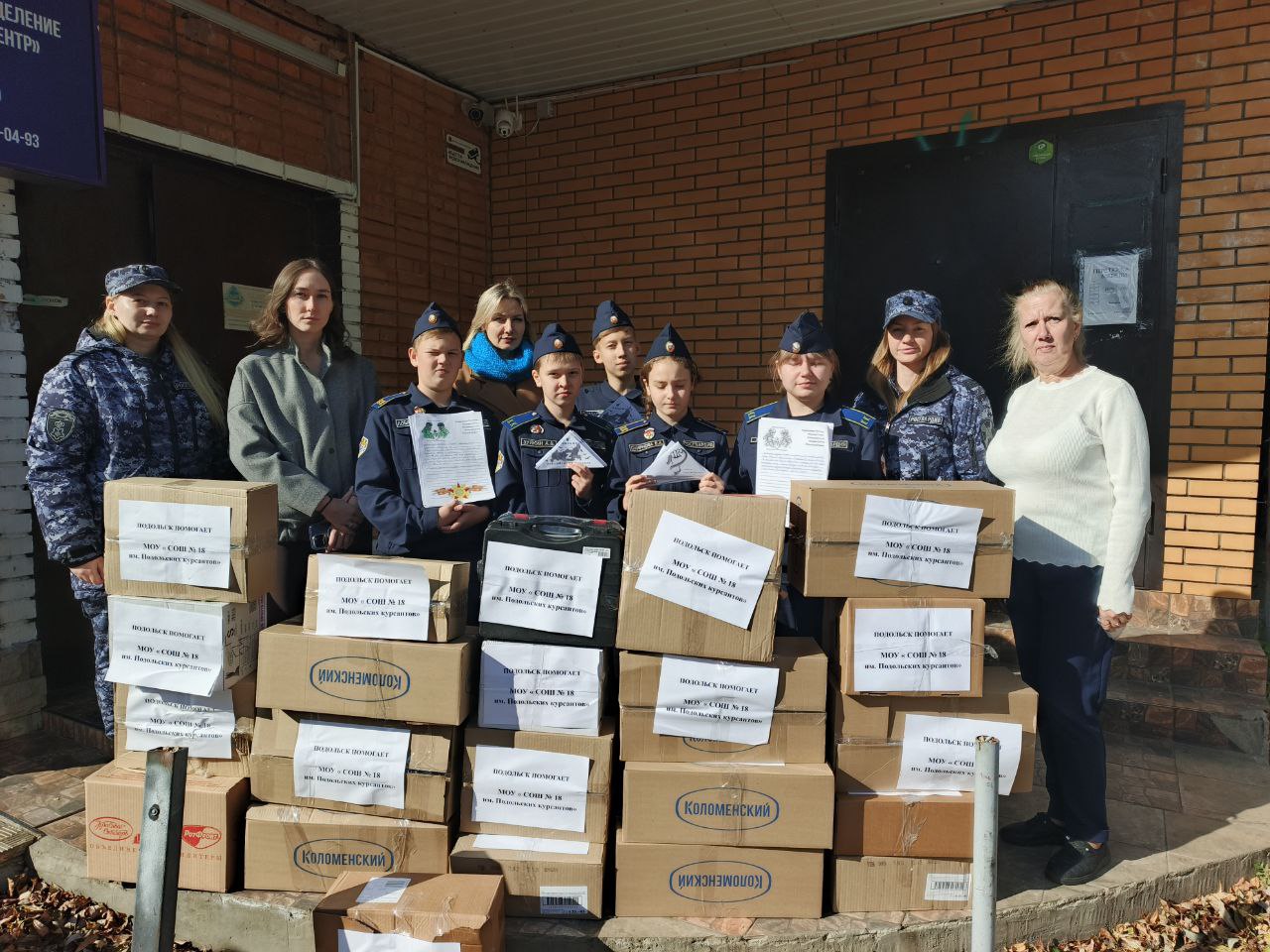 Гуманитарную помощь собирали все вместе в школе № 18 имени Подольских курсантов – участие принимали педагоги, школьники и их родители.