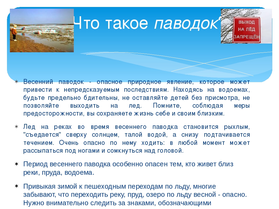 Отдел по делам ГО и ЧС администрации городского округа Подольск напоминает о необходимости соблюдения правил безопасности во время весеннего паводка.