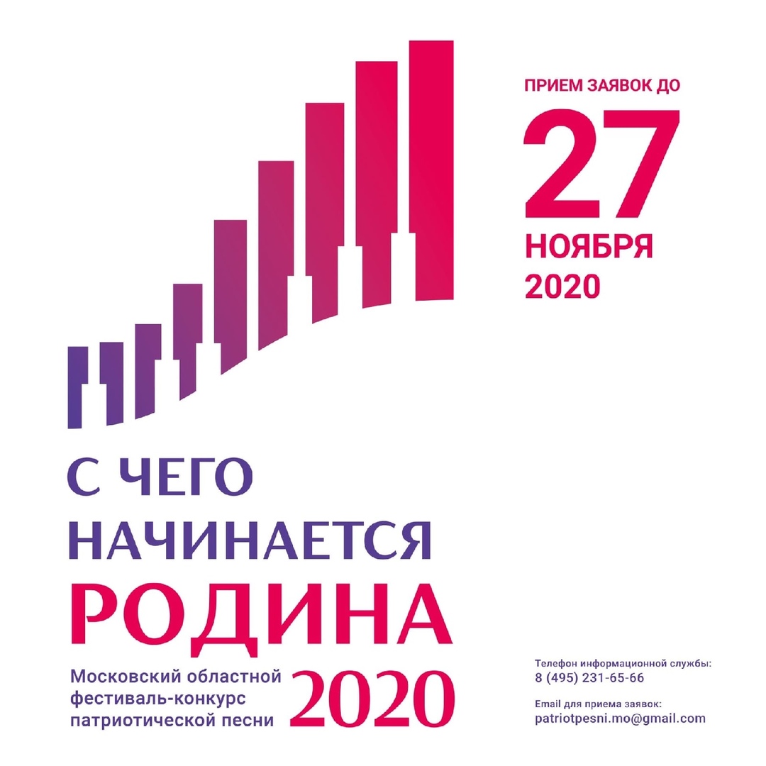 МЕДИАЦЕНТР — 16 ноября, ПОДОЛЬСК — Жителей Московской области и творческие коллективы в возрасте от 14 до 30 лет приглашаем к участию ежегодном Московском областном фестивале-конкурсе патриотической песни «С чего начинается Родина…». Традиционно организатором фестиваля-конкурса выступает Главное управления социальных коммуникаций Московской области.