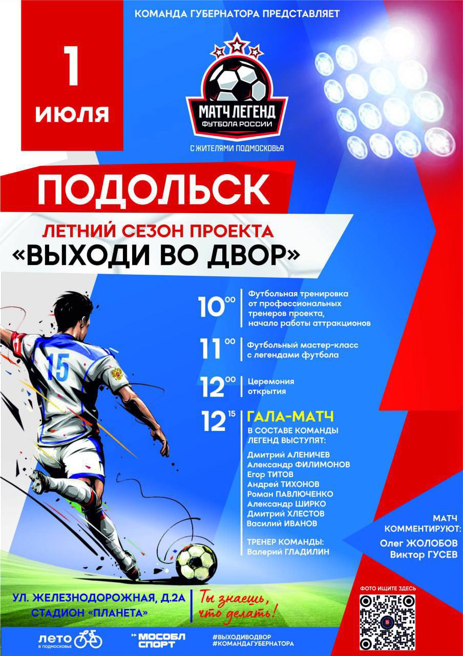 «Выходи во двор» – проект, позволяющий жителям Подмосковья бросить вызов лучшим футболистам разных времен.