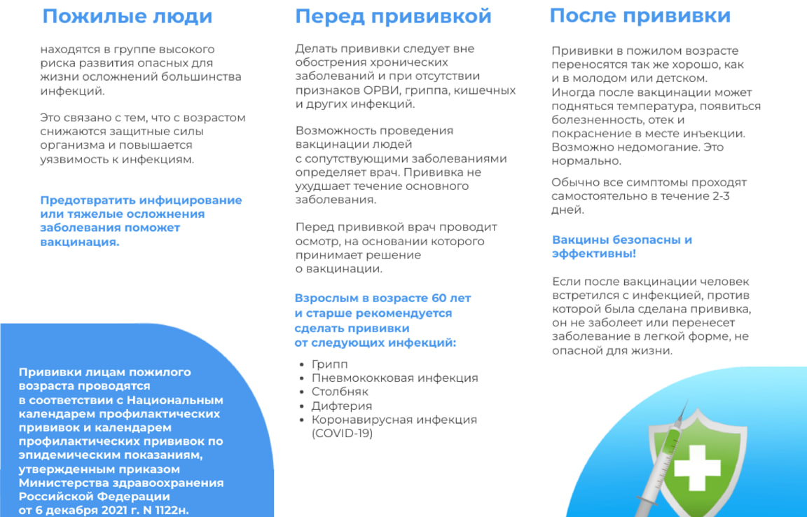 Что касается пневмококковой инфекции, то пожилым людям рекомендуется получать вакцину один раз в 5 лет. Это особенно важно для тех, кто имеет хронические заболевания или ослабленную иммунную систему.