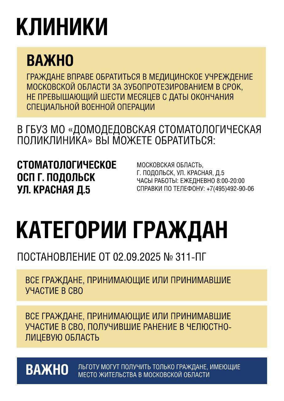 Те, кто принимал или принимает участие в СВО и проживает в Московской области, могут стать участниками программы губернатора Московской области Андрея Воробьева и сделать зубопротезирование бесплатно.