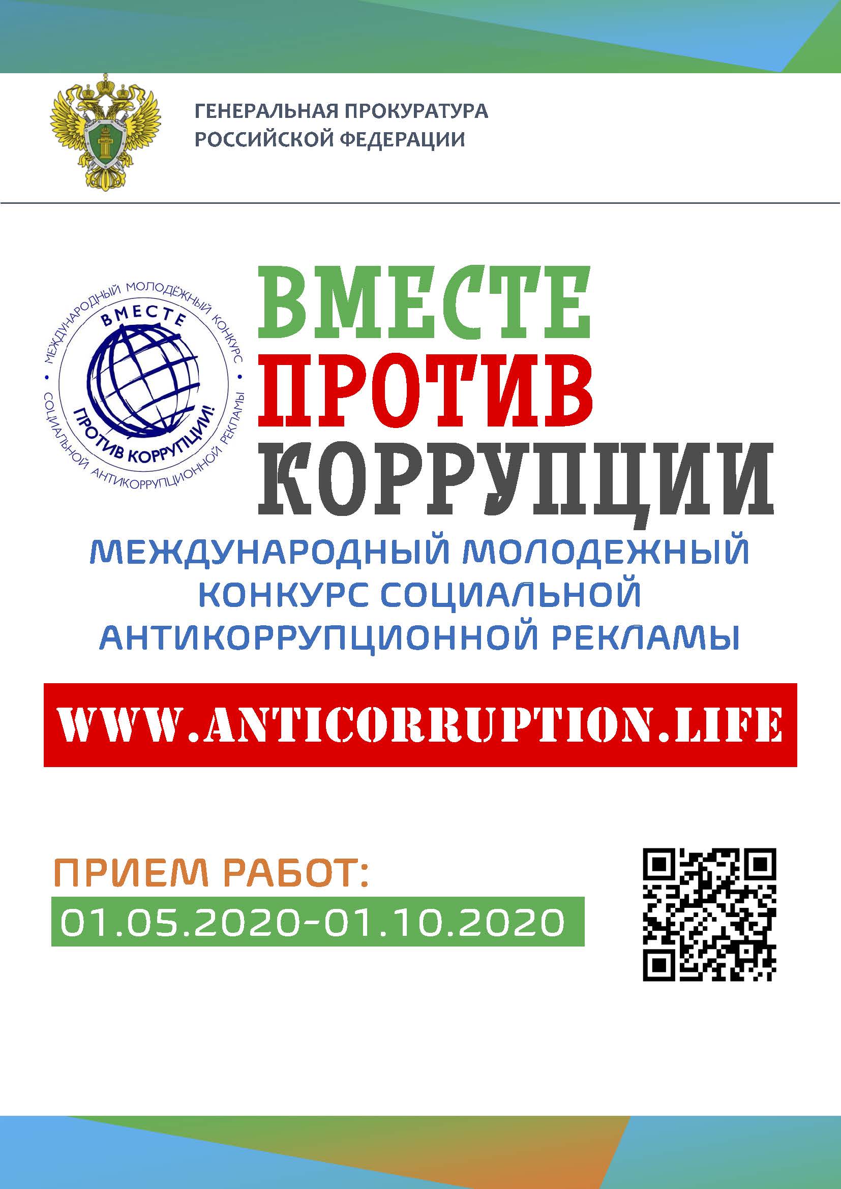 Генеральная прокуратура Российской Федерации организовывает Международный молодежный конкурс социальной антикоррупционной рекламы «Вместе против коррупции!».