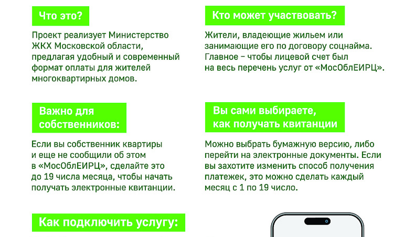 Министерство жилищного-коммунального хозяйства Московской области запустило пилотный проект, который позволит собственникам получать платежные документы в электронном виде на региональном портале госуслуг.