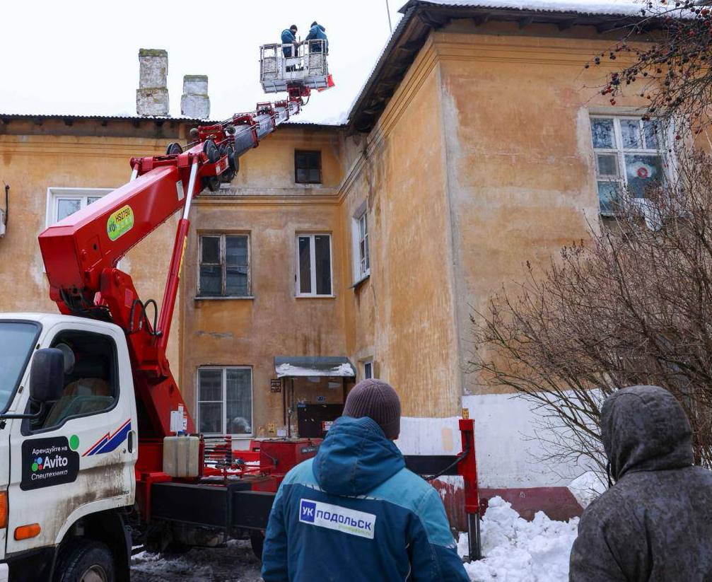 Коммунальные службы Подольска ведут работы по расчистке кровель домов