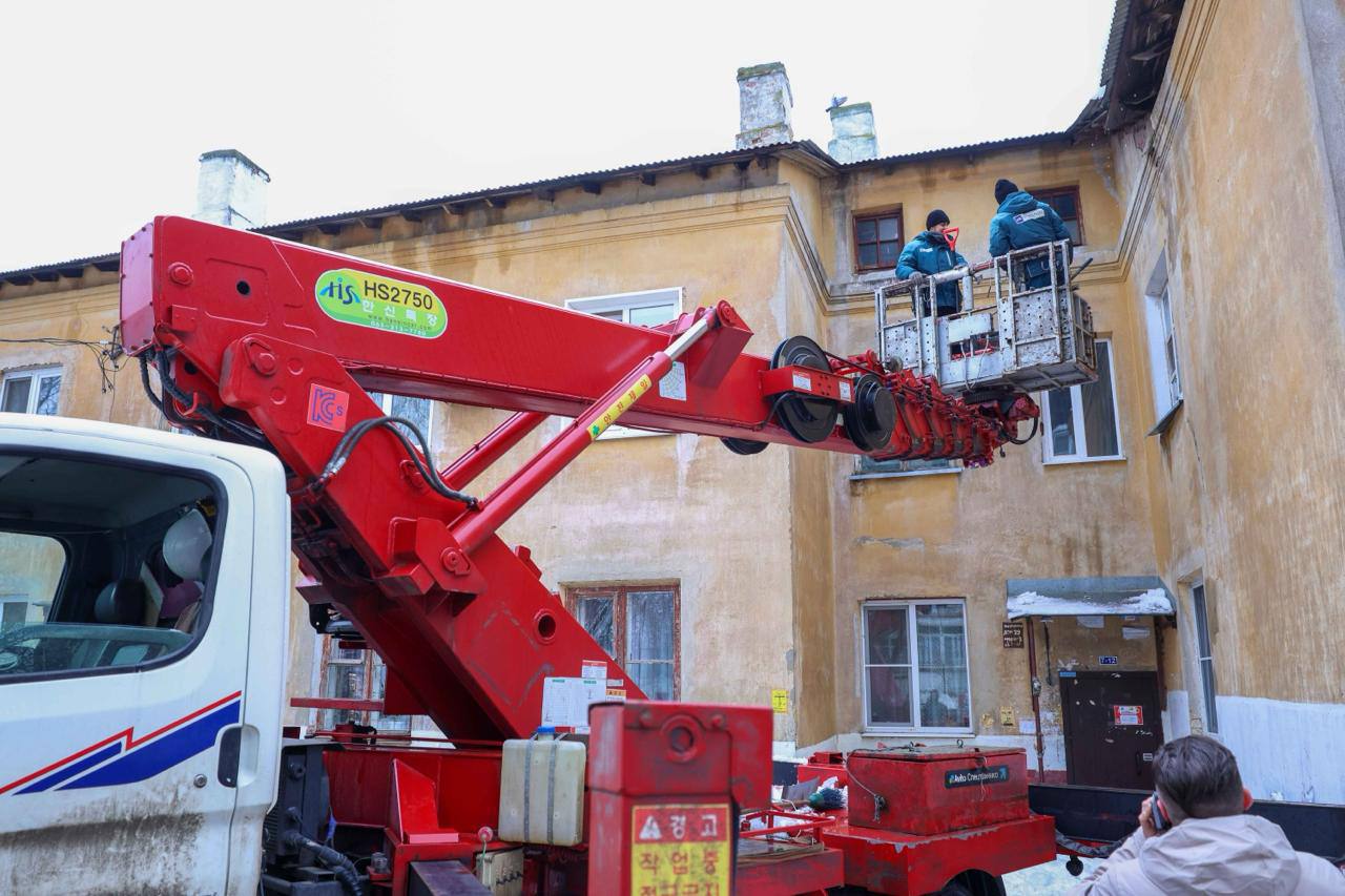 Так, работы провели на улице Народной, к дому 29 была привлечена специализированная техника — автовышка. Дом включен в реестр ветхого жилищного фонда. Износ кровельного покрытия здесь составляет более 65 %. Кровля здания — вальмовая (четырехскатная), на ней отсутствуют защитные ограждения. В таких условиях выход промышленных альпинистов на крышу невозможен. Именно поэтому для очистки привлечена специализированная техника — автовышка, которая позволяет эффективно и безопасно убрать снег, не подвергая риску людей.