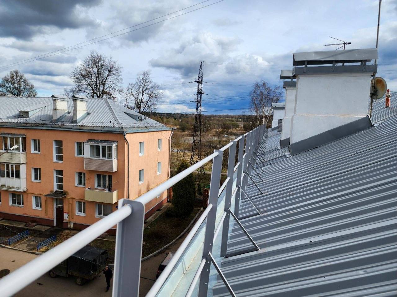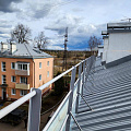 Сейчас рабочие устанавливают снегозадержатели, водосточную систему, а также монтируют кровельные ограждения. Останется закрепить страховочную линию для дальнейшего обслуживания кровли.