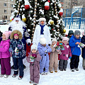 Ребята вместе с аниматорами водили хороводы вокруг наряженной елки, танцевали и участвовали в конкурсах.
