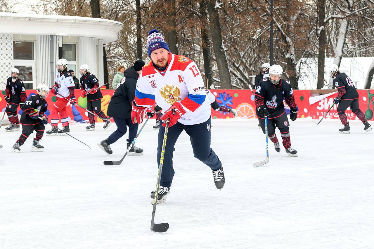 На катке в парке имени Виктора Талалихина состоялся мастер-класс для всех любителей спорта и воспитанников спортивной школы «Витязь». Своим опытом с ребятами поделился настоящий профессионал: бронзовый призер чемпионата мира Роман Любимов. Звездные наставники занимались с юными игроками от 8 до 16 лет.