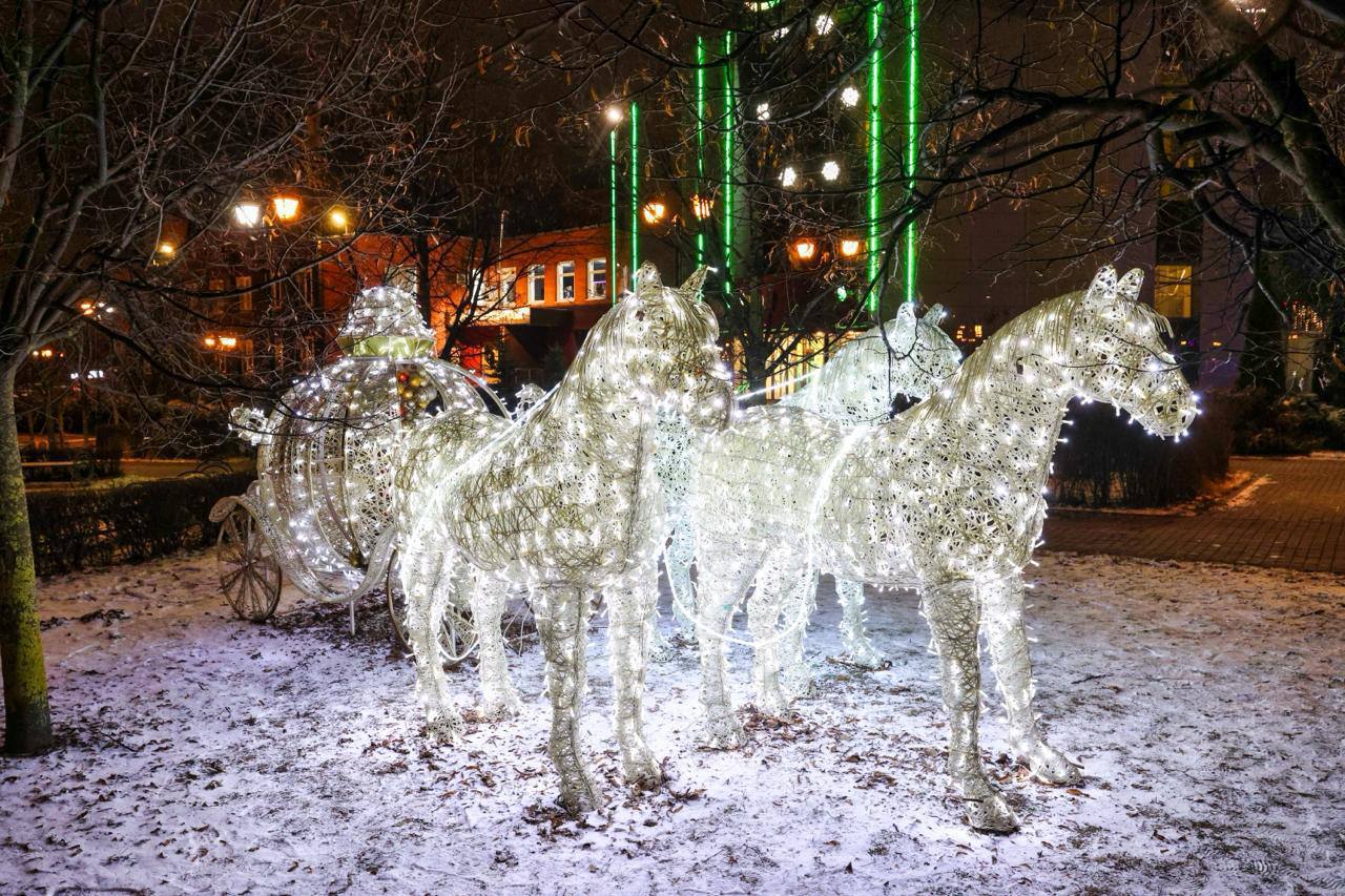 - Бульвар Льва Толстого украсила грациозная световая фигура «Лошадь с каретой», добавляющая новогоднего шика.
