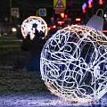 - На улице Стекольникова жителей уже радуют яркие световые фигуры «Елочные игрушки».