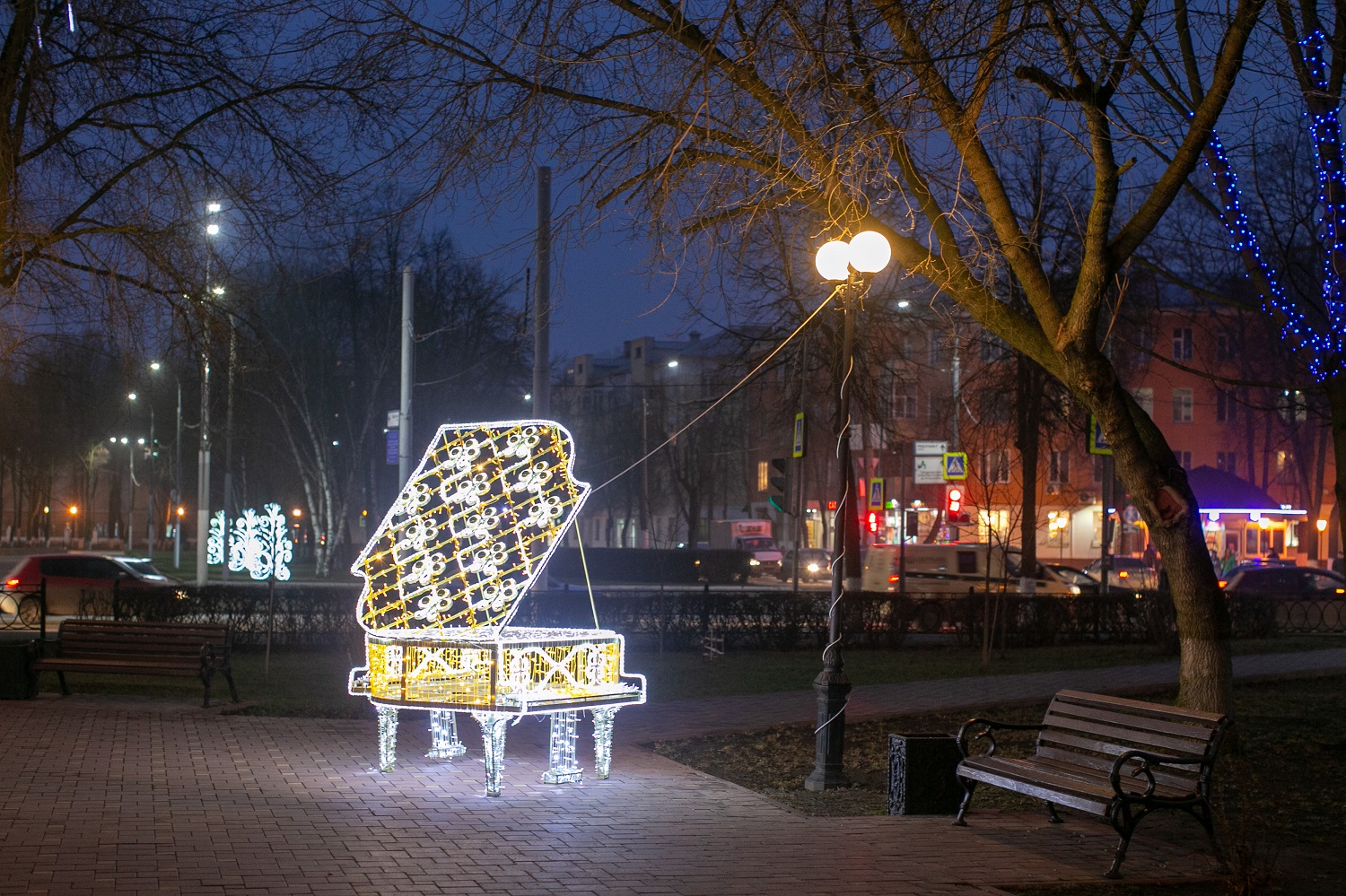 На бульваре имени Карелова установлено 3 световых шара, на площади Славы – световые фонтаны. На бульваре Юности организована фотозона с шаром «Под куполом Рождества», установлена световая фигура «Олени с санями и подарками» и новый праздничный элемент — композиция «Квартет снеговиков». На бульваре 65-летия Победы в микрорайоне Кузнечики по традиции установлено 5 световых арок «Звезды», а также 12 новых световых елей.