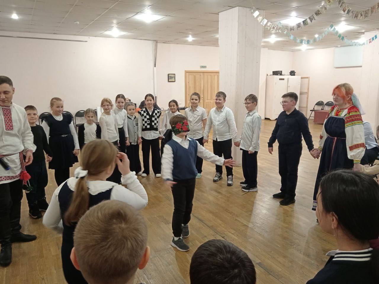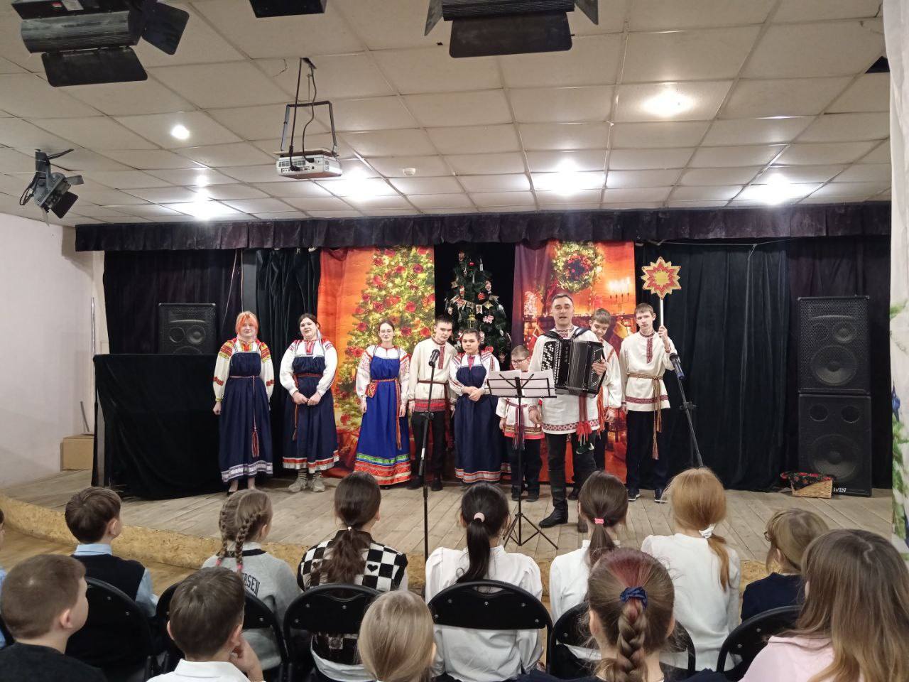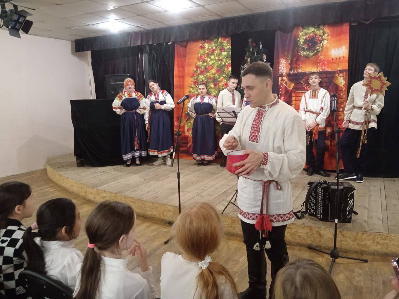 участники услышали живое исполнение старинных святочных песен; все вместе водили хороводы и играли в народные игры.