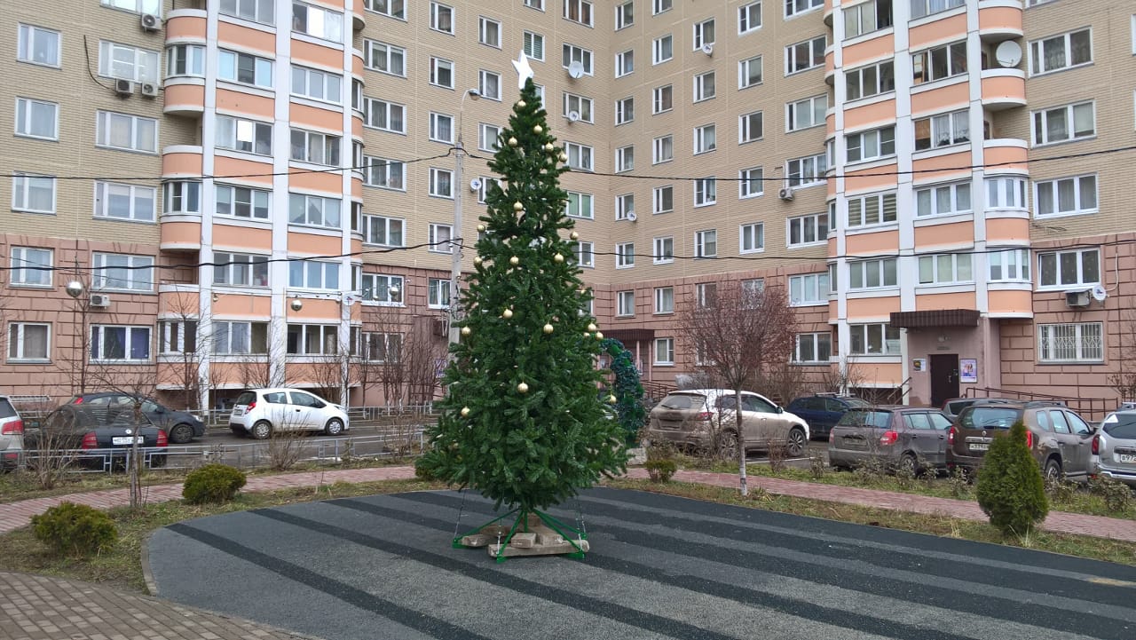МЕДИАЦЕНТР — 18 декабря, ПОДОЛЬСК — Как сообщили в территориальном управлении микрорайона, одной из первых наряженную ёлку установили во дворе многоквартирного дома № 15 по улице Академика Доллежаля. Работу по благоустройству осуществляло товарищество собственников жилья «Доллежаля, 15» совместно с управляющей компанией МУЖРП-12.